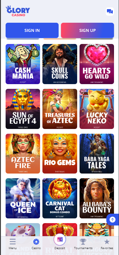 Tətbiq yüngül işləyir, interfeys gözəldir. “Glory Casino app” mobil formatda daha rahat görünür, xüsusən bonus bölməsi.